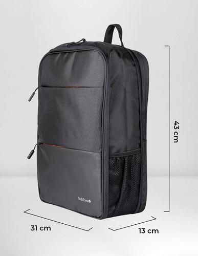 Mochila Techzone Tz21lbp13-b Bolsa Delantera, Bolsa Lateral, Bolsillo Superior, Tamaño Max De Pantalla 15.6", Nylon, Poliéster, Color Negro