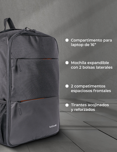 Mochila Techzone Tzlbp14 Tamaño Max De Pantalla 16", Poliéster, Color Negro