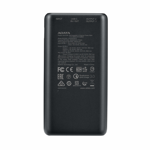 Power Bank Adata P20000qcd, 20,000 Mah, 1xusb-c, 2xusb 2.0, 3 Puertos, Negro