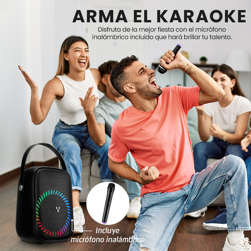 Bocina Karaoke Speaker Vorago 455, Usb, Bt, Microfono Inalambrico, Rgb, Correas Ajustables, Negro