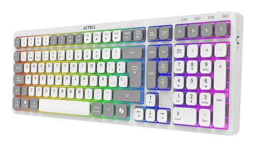 Teclado Acteck Inspire Trek Ti747 Español, Inalámbrico, Rf Inalámbrico + Bluetooth, Interruptor De Llave De Tijera, Gris, Blanco