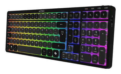 Teclado Acteck Techno Pro Ti790, Inalambrico, Mecanico, Rgb, Bluetooth, Usb 2.4 Mhz, Negro