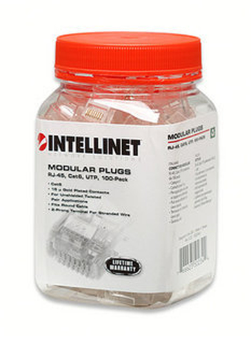 Bote De Conectores Rj45 Intellinet, Cat5e, 3 Puntas, Para Cable Solido, 100pzas