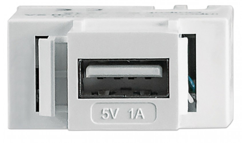 Conector Intellinet Jack Keystone Con Puerto Usb De Carga Tipo De Construcción Plano, Conector 1 Usb A, Conector 2 Terminal, Color Blanco