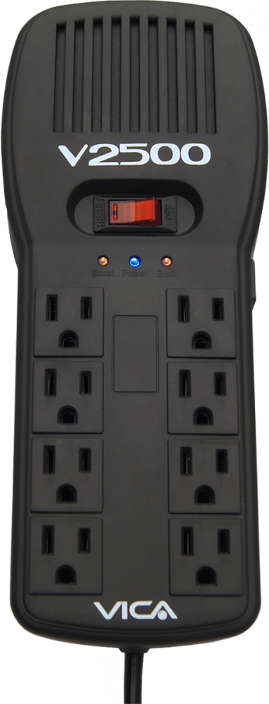 Regulador Vica T-02 1.2 Kva / 700 W, Entrada 127 V, 8 Salidas Ac, Negro