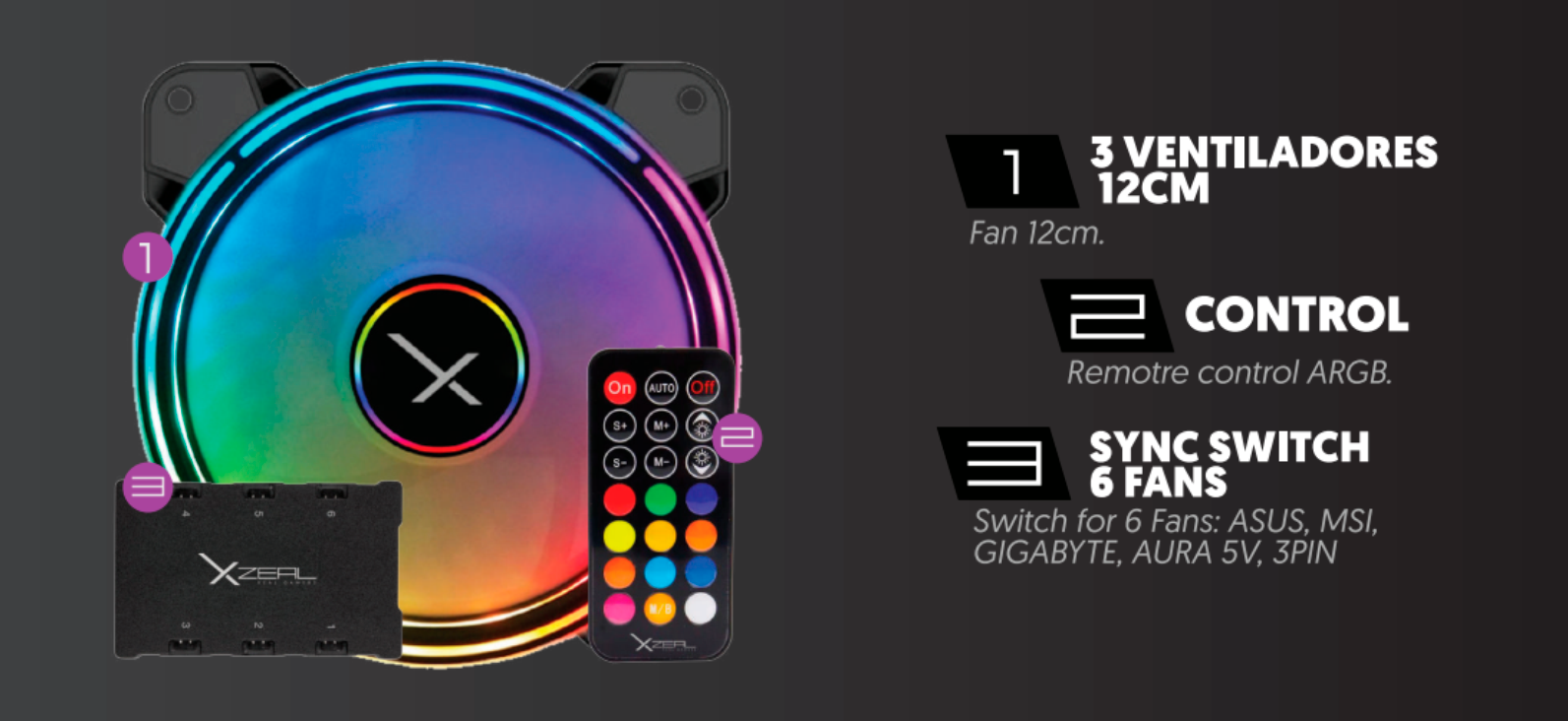 Kit De 3 Ventiladores Xzeal Rgb, 120mm, 1200 Rpm, Color Negro, Xzve100b