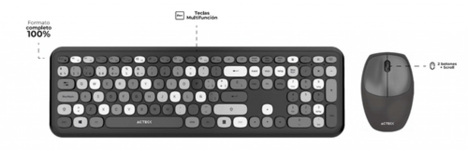 Kit Teclado Y Mouse Acteck Creator Chic Colors Mk470 Inalambrico, Usb, Gris