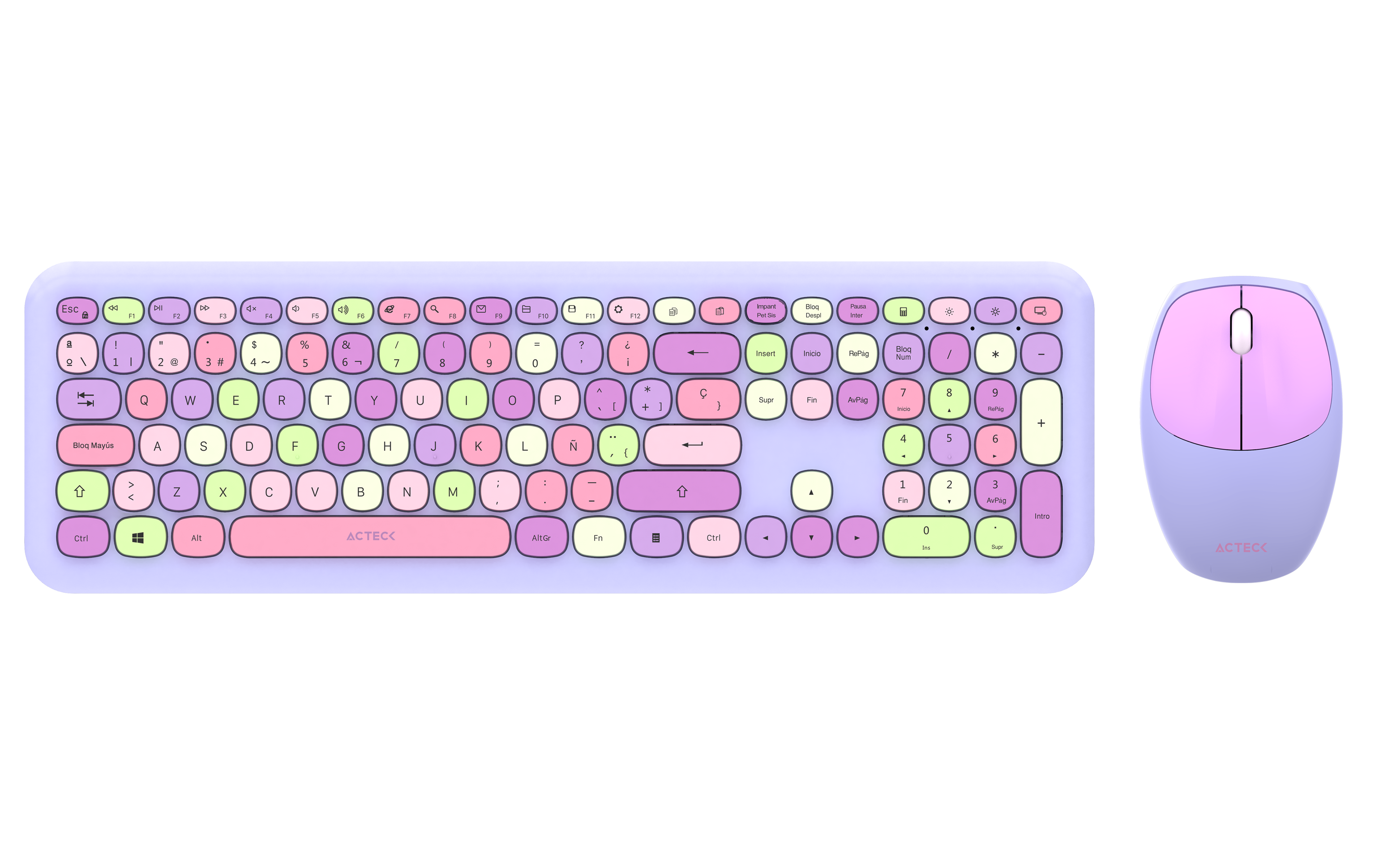 Kit Teclado Y Mouse Acteck Creator Chic Colors Mk475 Inalambrico, Usb, Morado