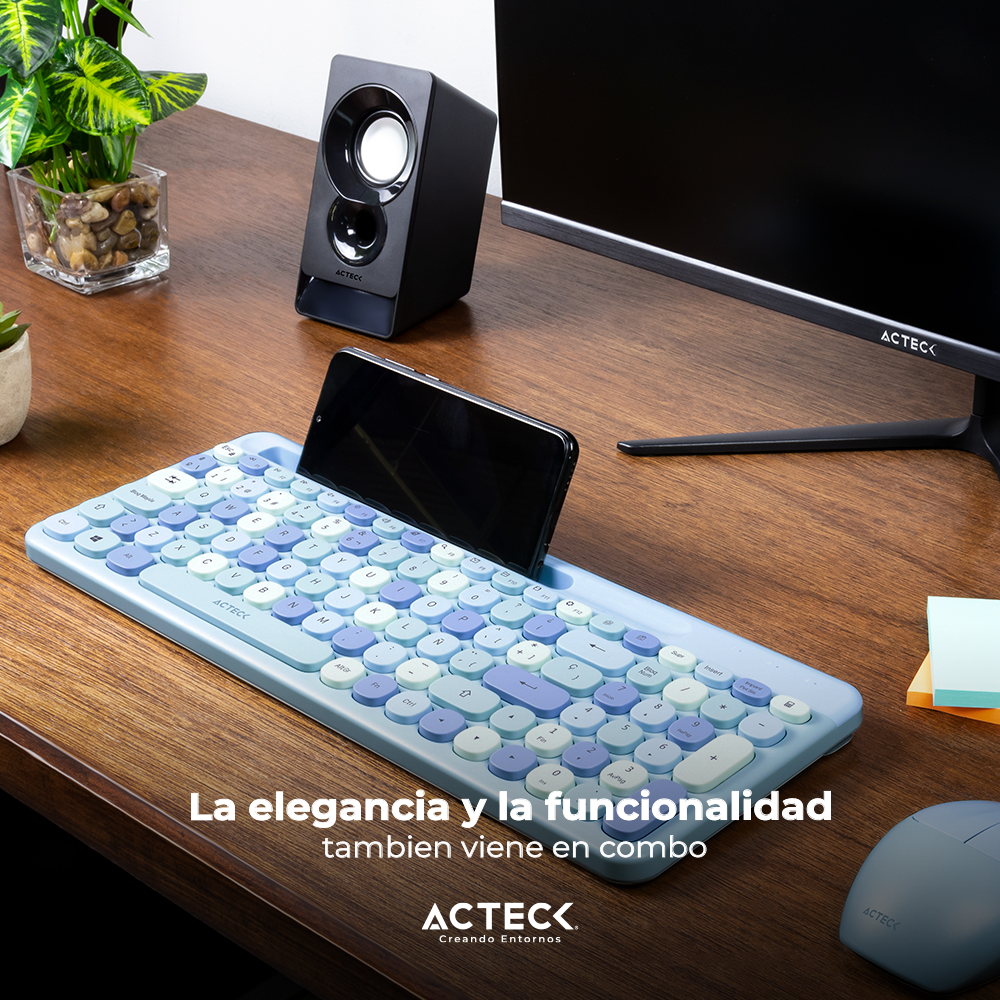 Kit Teclado Y Mouse Acteck Creator Chic Colors Mk470 Inalambrico, Usb, Azul