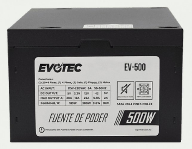 Fuente De Poder Evotec Ev-500 500 W, No, Non-modular