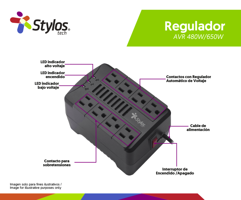 Regulador De Voltaje Stylos Stre650b Re650, 1200va/650w, 8 Contactos, Negro.